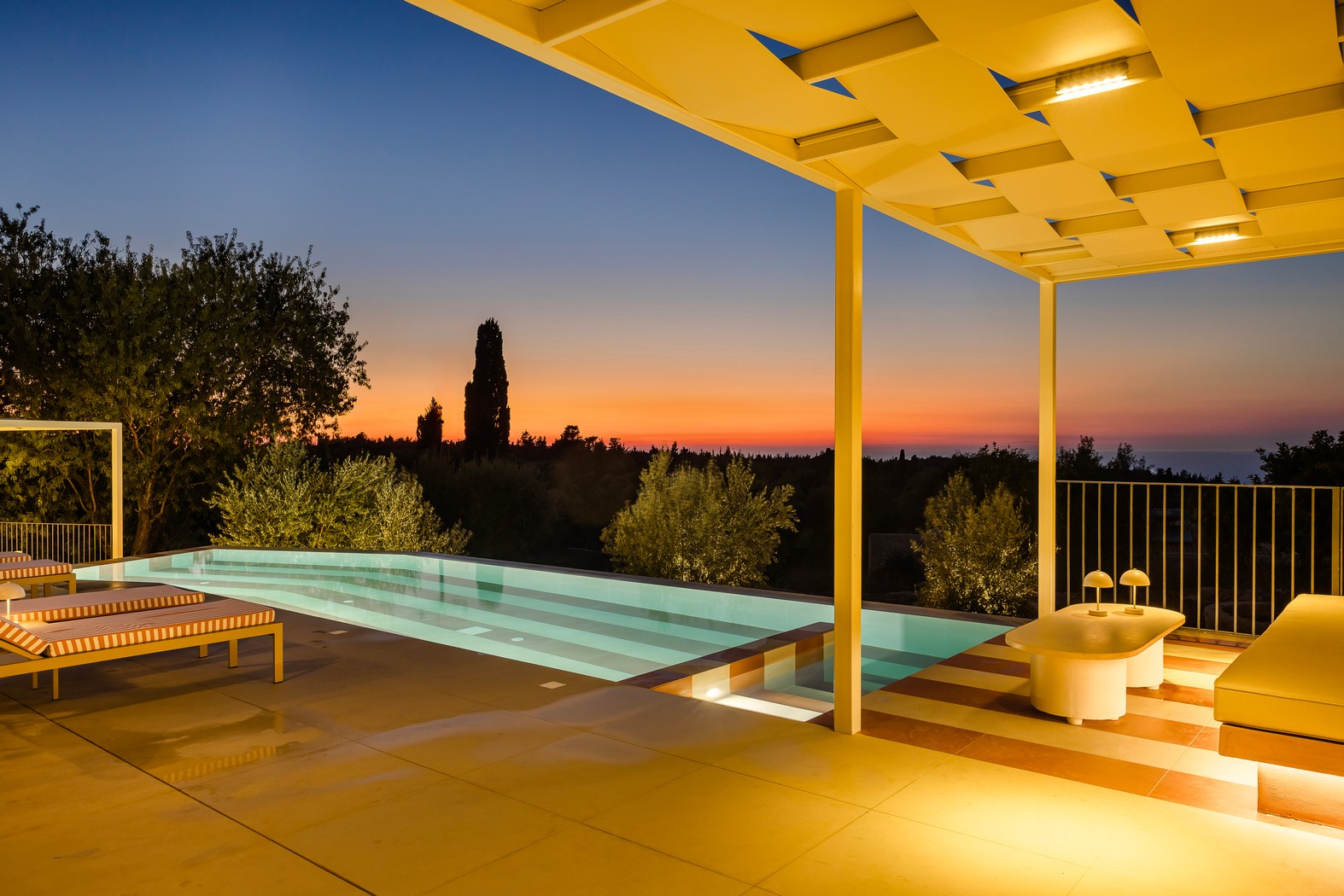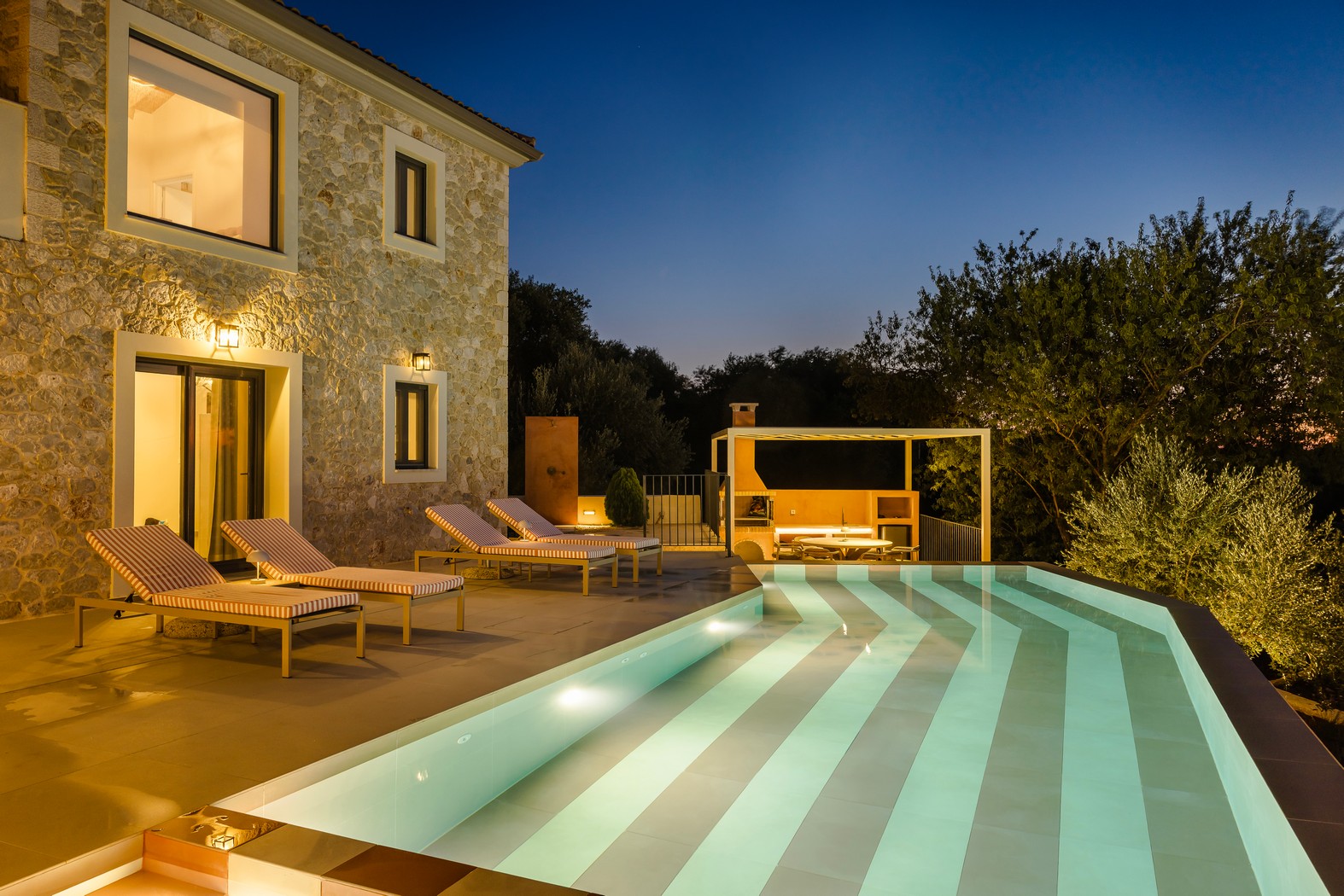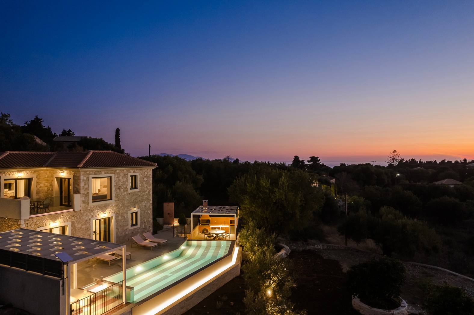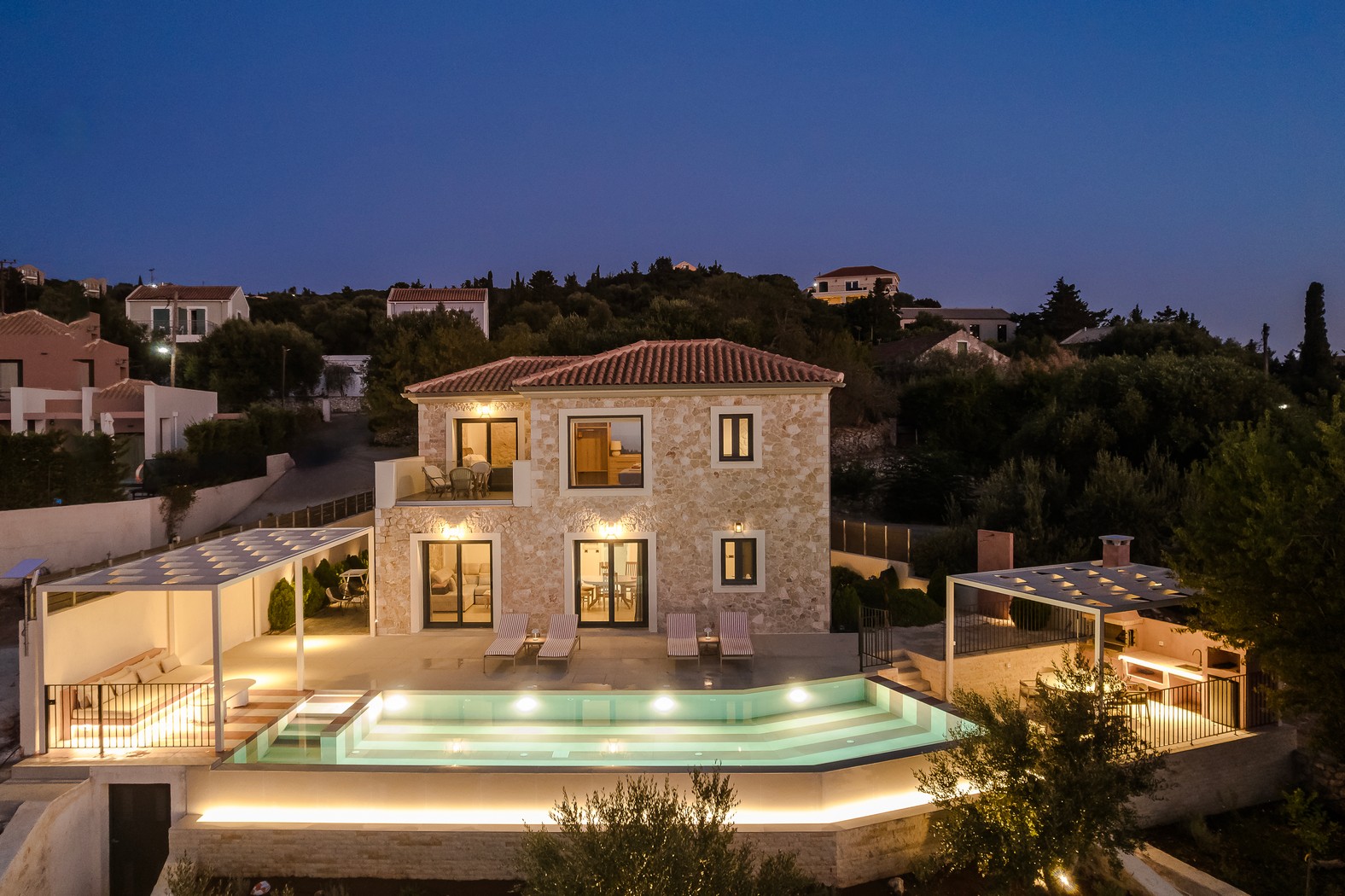 Majestic Stone Villa shines like a diamond in the village of Markandonata, on the island of Kefalonia. It is situated in an exceptional location, at a distance of less than 3 km from the Port of Fiskardo, 5 minutes by car from Firskardo Beach and only 1 ¾ km from Dafnoudi Beach, which is often called a paradise-like beach because it is surrounded by a vivid, lush green environment, including a cave with its own beach.